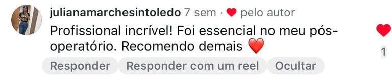Com mais de 14 anos de experiência, destaca-se pela excelência no cuidado, atenção aos detalhes e compromisso em potencializar resultados com segurança, conforto e bem-estar, proporcionando aos pacientes uma recuperação mais tranquila e eficaz.